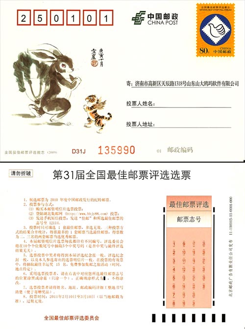 第31届全国最佳邮票评选选票明信片